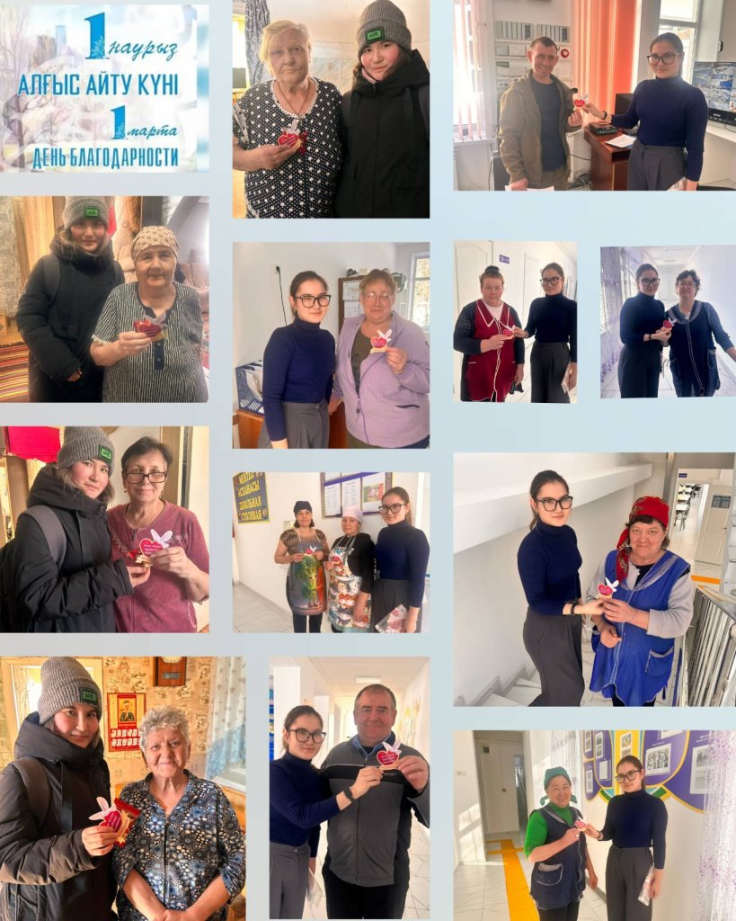 27 ақпанда мектептің тәлімгері педагогикалық ұжым мен Мектеп парламенті атынан еңбек демалысындағы қызметкерлерді, сондай-ақ техникалық қызметкерлерді, аспаздарды, медициналық қызметкерді және кітапханашыны Алғыс айту күнімен құттықтады.