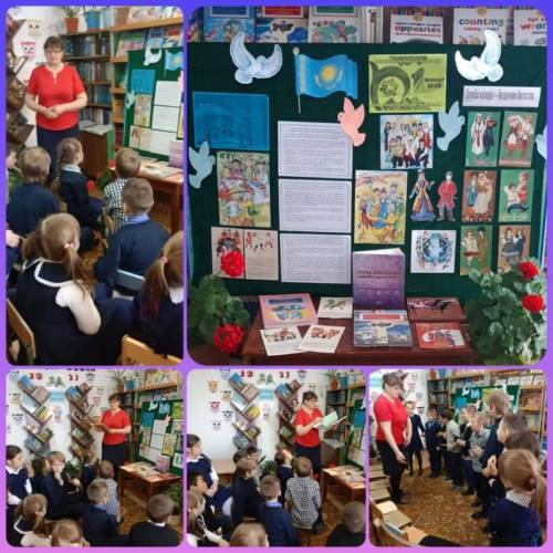 28 сәуір күні Қазақстан халықтарының бірлігі күнін мерекелеуге орай мектебінің кітапханашысы О.Б. Гермоний кітап көрмесін ұйымдастырды. Балалар мереке туралы ақпаратты тыңдады, ойындар ойнады. Біз уақытты қызықты және пайдалы өткіздік.
