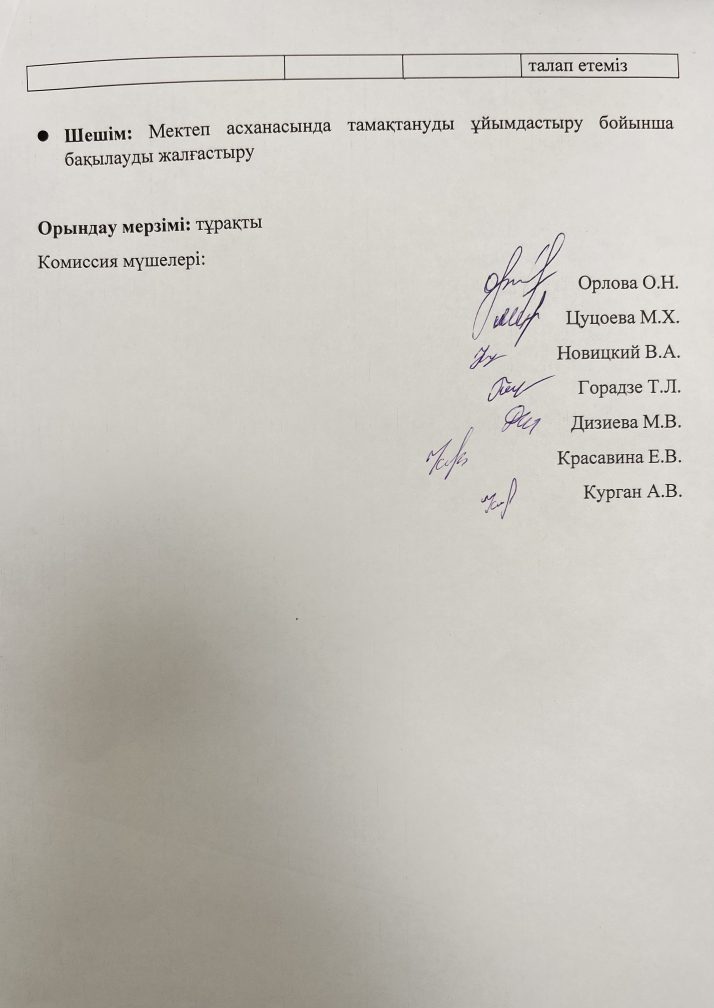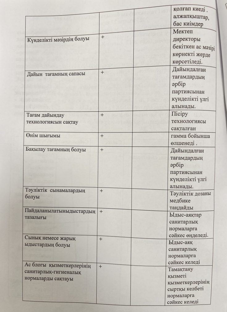 Мектептегі тамақтану мониторингі жөніндегі комиссияның №3 актісі
