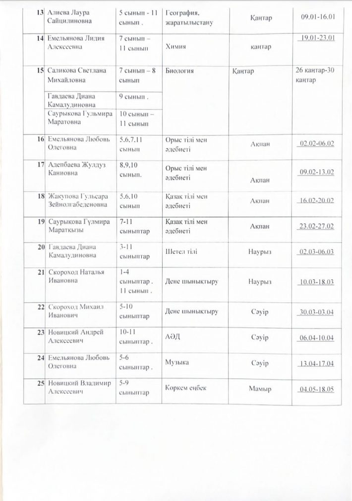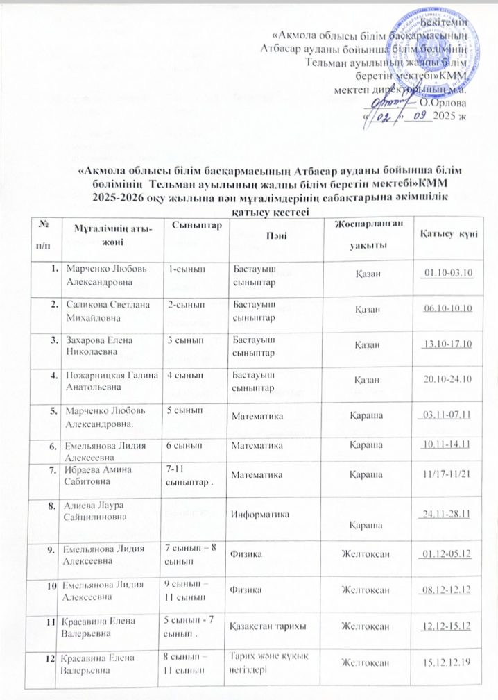 2025-2026 оқу жылының арналған мектеп әкімшілігінің сабаққа бару кестесі
