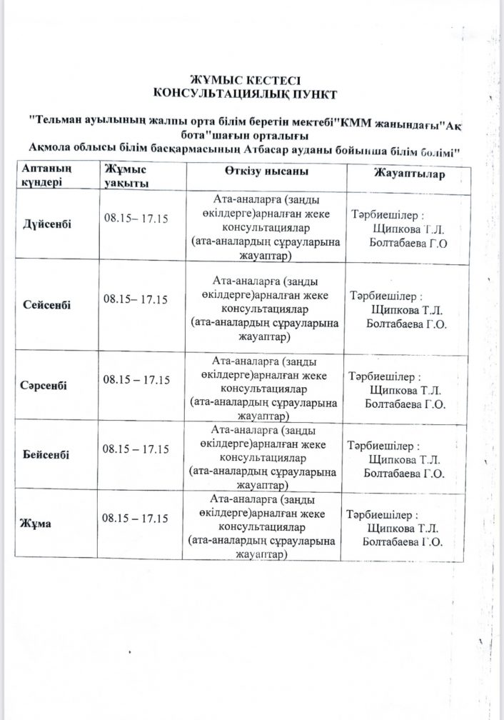 Коммунальное Государственное учреждение " Общеобразовательная школа села Тельмана отдела образования по Атбасарскому району управления образования Акмолинской области"