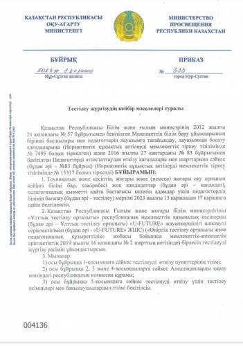Жұмысқа орналасу үшін тестілеуден өткені туралы ақпарат