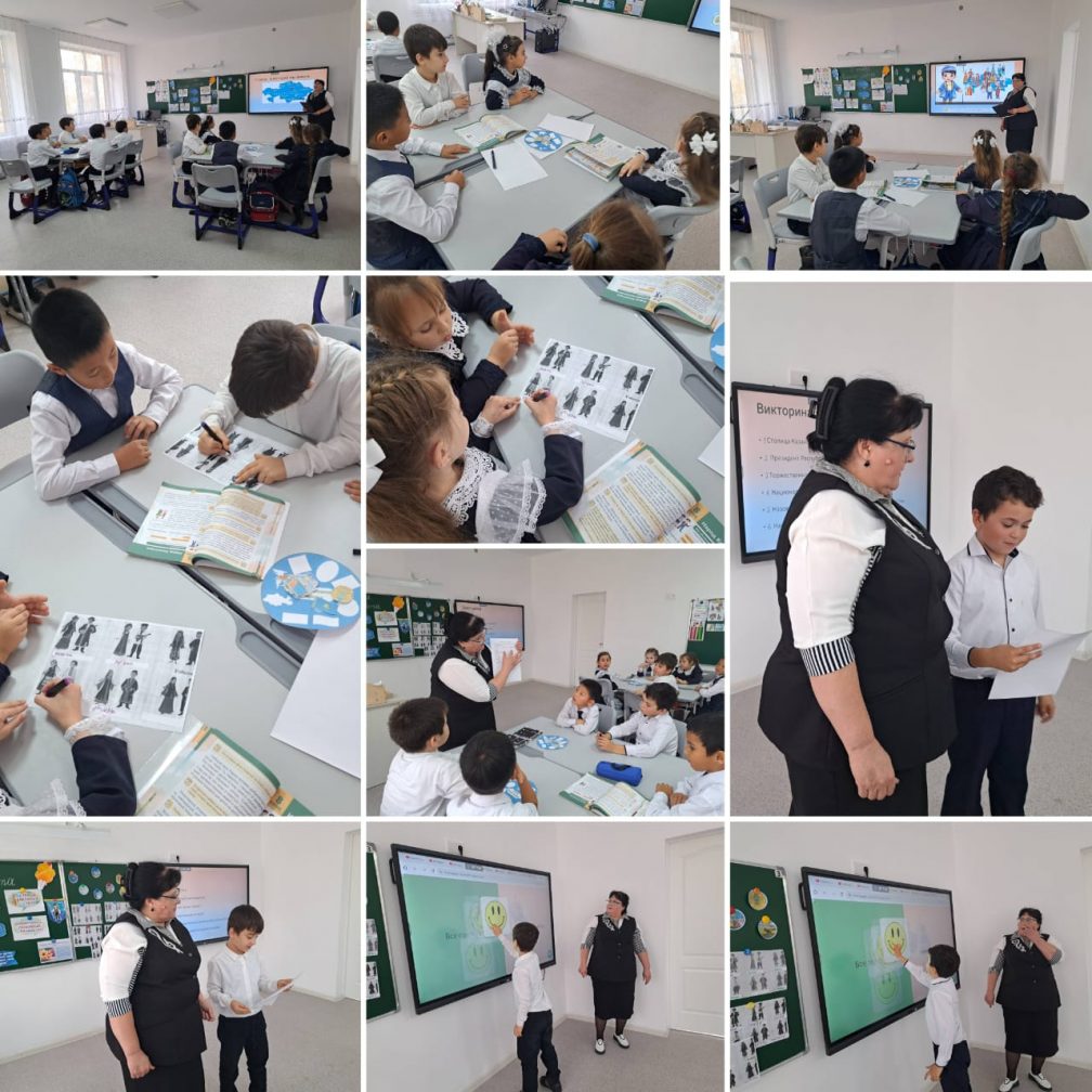 Сондай-ақ, викторина барысында оқушылар мемлекеттік рәміздер, бірлік, көпұлттылық және Қазақстан халықтарының мәдениеті туралы сұрақтарға белсенді түрде жауап берді. Сабақ бойы балалар интерактивті тақтамен белсенді жұмыс істеді.
