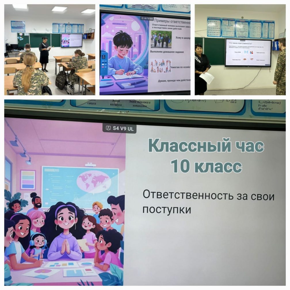 24 қараша күні «Тельман ауылының жалпы білім беретін мектебі»КММ-де «Өз әрекеттерің үшін жауапкершілік» тақырыбында тәрбие сағаттары өтті. Сонымен қатар, жоспарға сәйкес 10 минут жеке қауіпсіздік сабақтарына арналды.