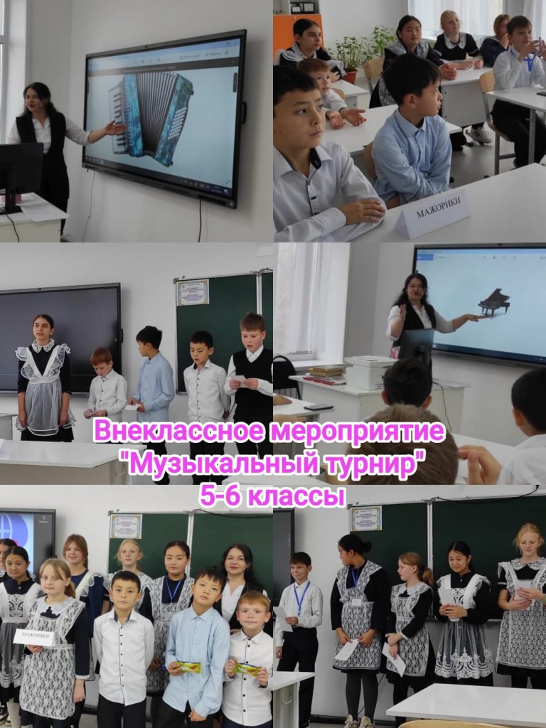 28 қараша күні эстетикалық цикл апталығының жоспарына сәйкес 5 және 6-сынып оқушылары арасында музыкалық турнир өтті. Турнир барысында оқушылар түрлі музыкалық тапсырмаларды орындады. Турнирде 6-сынып командасы жеңіске жетті.
