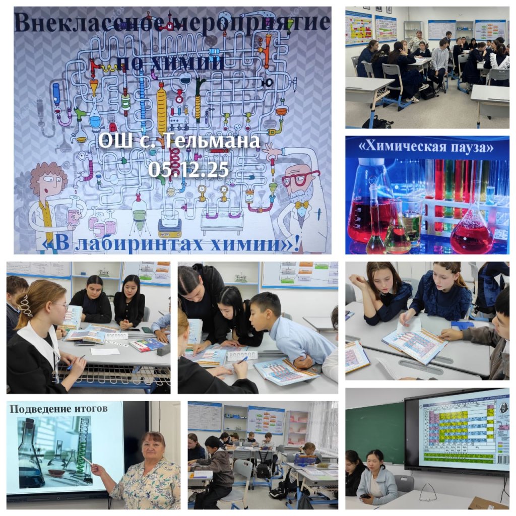 Химия, биология және география апталығы аясында, жоспарға сәйкес, 2025 жылғы 5 желтоқсанда «Тельман ауылының жалпы білім беретін мектебі» КММ-де «Химия лабиринттерінде» атты сыныптан тыс іс-шара өткізілді.