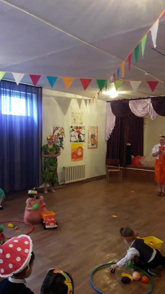 спрятаны. Ребята с большим удовольствием выполняли задания, придуманные Осенью: читали стихи, пели песни, танцевали. Не один праздник не обходиться без сказочных героев, и наших ребят порадовалигерои: Лисичка, Холодрыга и Слякоть, которые подготовили для них разнообразные игры: «Огородная - хороводная», «Перевези с поля урожай», «Рассортируй овощи ифрукты», «Собери листочки», где дети показали свою ловкость, сноровку,