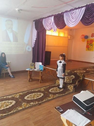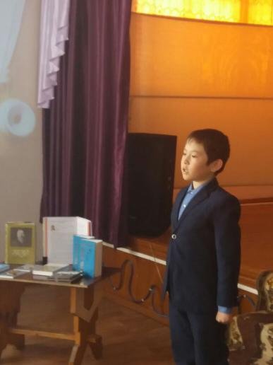 Дамир, Балтабаева Назира 4 сынып оқушылары, Сарсембаев Дастан, Кудрявцев Тимур, Мусина Дария 6 сынып, Ыдырыс Баян 9 сынып, Мышкина Анастасия, Щерба Тофик, Кноль Лилия, Адепбаева Жулдыз 10 сынып. «Көңілім әнді ұғады»- Абай мен Шәкәрімнің әндерің орындаушылардың конкурсы. Орынбек Альмира 6 сынып, Косарева Арина,Санхур Диляра, Кулумбетова Карина 5 сынып оқушылары. Барлық балалар белсенді қатысқан үшін мақтау қағазымен марапаталды.