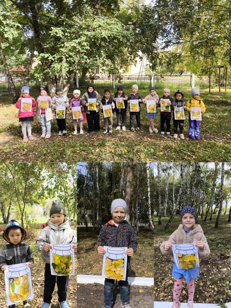 Біз балалармен бірге ең әдемі жапырақтарды жинадық: сары, қызғылт, қызыл және тіпті әлі түсін өзгертпеген жасыл жапырақтар. Әрбір баланың алдында банка салынған суреті болды, сол банкага біз күзгі жапырақтарды «сақтап» қоюға шештік. Бұл сабақ тек ұсақ моториканы және шығармашылық ойлауды дамытып қана қоймай, балаларға қоршаған әлемді жақсырақ тануға көмектеседі. Нәтижесінде бізде тамаша «күзгі естеліктер банкалары» пайда болды.