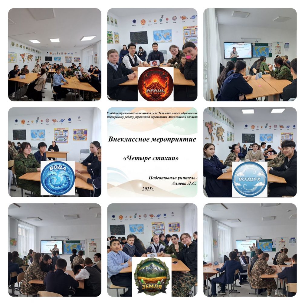 3 желтоқсан күні география онкүндігі аясында «Тельман ауылының жалпы білім беретін мектебі» КММ-де жарқын да танымды сыныптан тыс іс-шара — «Төрт табиғи құбылыс» атты викторина өтті.