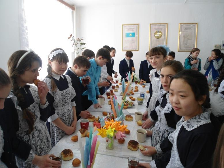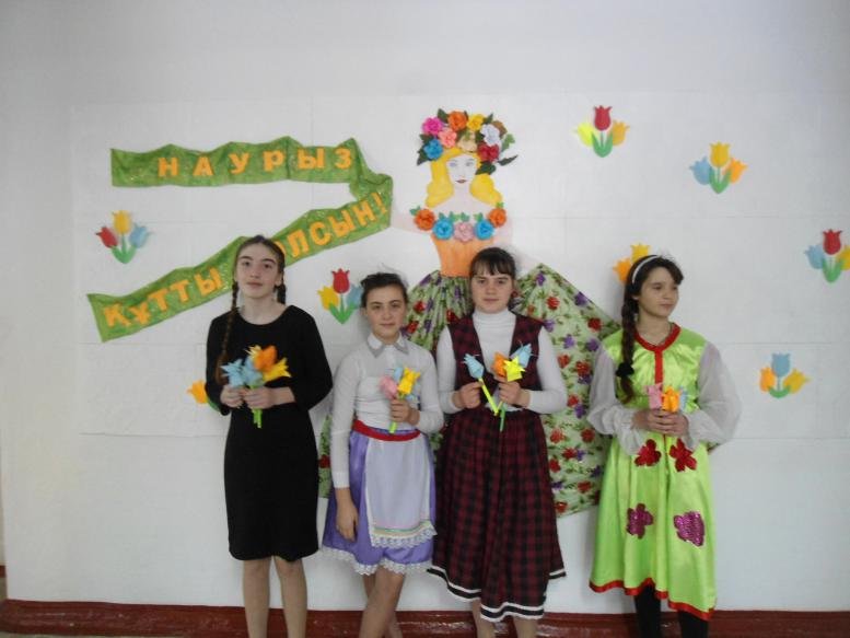 С давних времен у восточных народов существует праздник «Наурыз». Суть этого праздника в единстве человека с природой. На востоке Наурыз – начало нового года. Этот день 22 марта отмечали, т.к. день равнялся ночи, снег таял, появлялась зеленая трава. Поэтому день Наурыза древние люди считали началом нового года, с хорошими пожеланиями, с радостью встречали этот день. И в нашей школе 20 марта с утра звучала веселая музыка, всех ребят и учителей встречали девочки в национальных костюмах с символом весны в руках – тюльпаном. Классные руководители 1-11 классов провели классные часы на тему «Наурыз – праздник весны и изобилия». В этот день для ребят накрывались столы с баурсаками и сладостями. Звучали песни, исполнялись танцы, сценки, игры. Праздник получился по весеннему теплым и добрым. А 22 марта, на площади села прошли нородные гуляния, где учителя школы угощали всех горячим чаем и национальным блюдом «Наурыз –коже».
