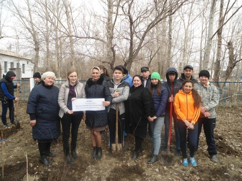 В КГУ «Тельманская средняя прошла акция «Всеказахстанская посадка леса». В ней приняли участие выпускники 9,11 классов, директор школы Прокофьева Е.Г., ЗДВРМусина З.К., классные руководители Емельянова Л.А., Лембаева А.К., первый учитель 11 класса Захарова Е.Н., учителя технологии Скороход Н.И., завхоз школы Осипов М.В. На линейке было объявлено об акции «Всеказахстанская посадка леса». Посажено 20 саженцев: сирень, вишня, черемуха.Эту акцию мы посвятили «20 – летию нашей столицы».