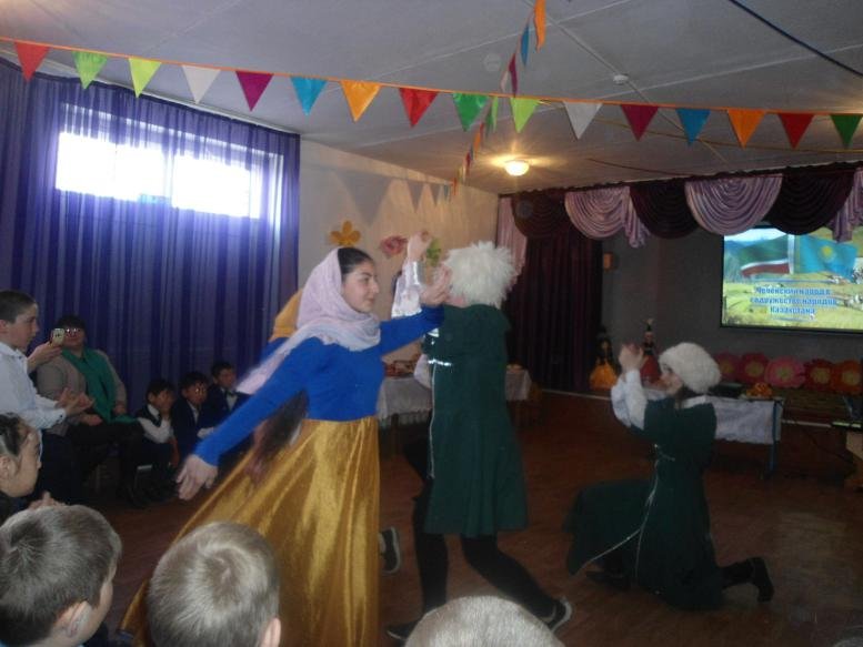 В предверии Дня Единства народов Казахстана в нашей школе прошли мероприятия: классный час во 2 классе «В семье единой» (кл.рук.Саликова С.М.). Учителем истории Четвериковой О.Е. и активистами музея для учащихся 3,4 классов была организована экскурсия в этнографический музей школы. В актовом зале прошел «Фестиваль народов